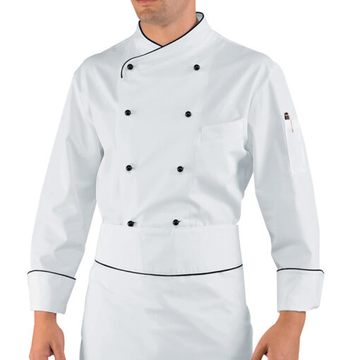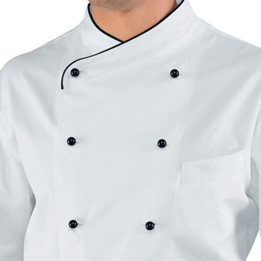 Giacca cuoco chef Pechino Isacco 057451 – colore bianco+nero – cotone 100% uomo