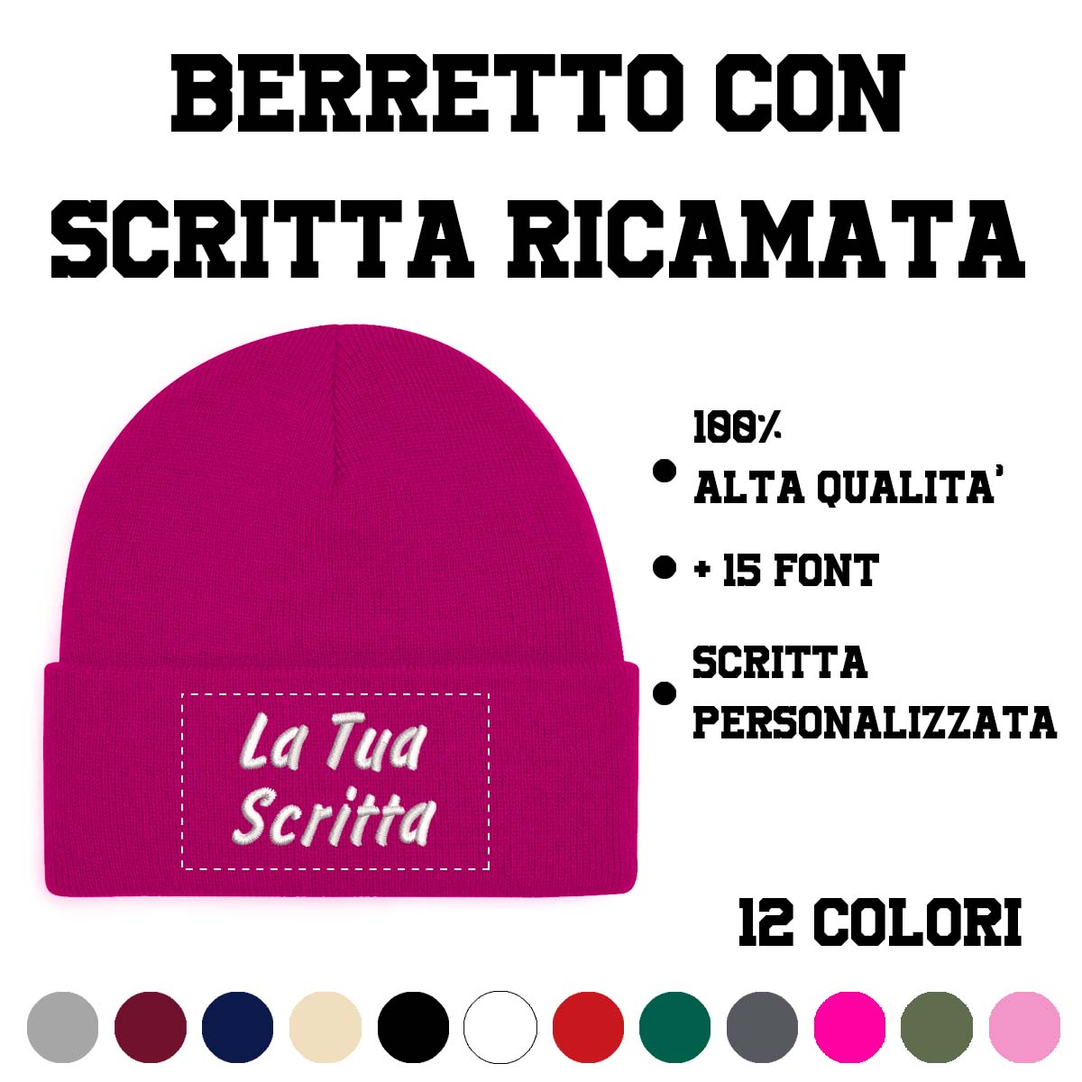 Berretto invernale con scritta ricamata 100% di alta qualitร , personalizzato per chi vuole distinguersi con stile.